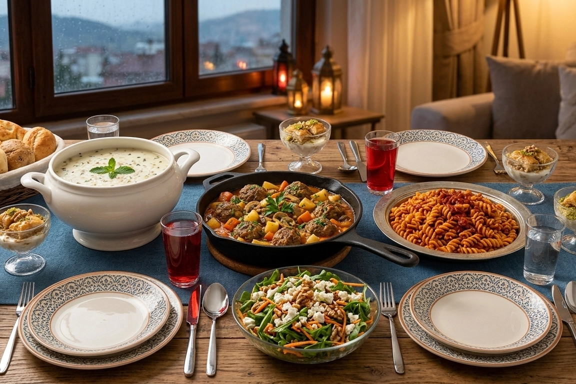 Uzman Notu: Beslenme uzmanları, yağışlı Bursa akşamında iftar sonrası ağır şerbetli tatlılar yerine bu menüdeki gibi sütlü tatlıların tercih edilmesinin uyku kalitesini artıracağını ve sindirimi kolaylaştıracağını özellikle vurguluyor.