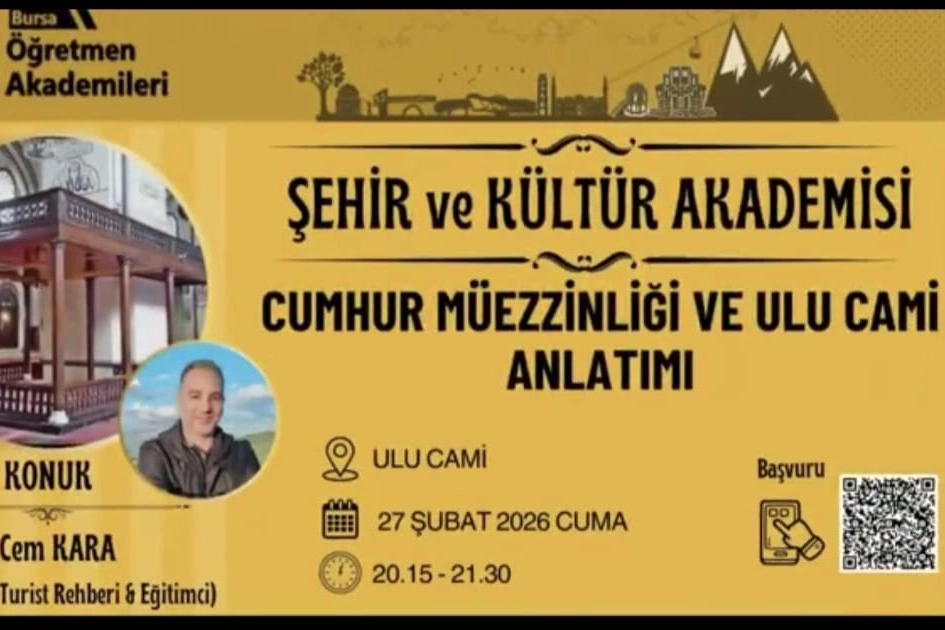 Şehir ve Kültür Akademisi ile "Maarifin Kalbinde Ramazan" etkinlikleri kapsamında, Bursa’nın sembolü Ulu Cami’de kapsamlı bir anlatım programı gerçekleştirildi. Tarihin Tanıklığında Bir Akşam Turist rehberi Cem Kara’nın anlatımıyla gerçekleşen etkinlikte, katılımcı öğretmenler Bursa Ulu Cami’nin mimari detaylarından hat sanatının derinliklerine kadar pek çok konuda yerinde bilgi alma fırsatı buldu. Kara, caminin sadece bir ibadethane değil, aynı zamanda Osmanlı Devleti’nin ruhunu ve vizyonunu yansıtan bir abide olduğunu vurguladı. "Cumhur Müezzinliği" Geleneği Yaşatıldı Ramazan ayının manevi atmosferine uygun olarak düzenlenen programın en dikkat çekici başlıklarından biri "Cumhur Müezzinliği" oldu. Osmanlı’dan günümüze miras kalan ve toplu halde icra edilen müezzinlik geleneğinin inceliklerinin paylaşıldığı etkinlikte, cami musikisinin ve ritüellerin eğitimciler üzerindeki etkisi büyüktü. Akademiden Kültürel Miras Vurgusu Bursa Öğretmen Akademileri yetkilileri, bu tür etkinliklerin öğretmenlerin şehre olan aidiyet duygusunu güçlendirdiğini ve elde edilen bu kültürel birikimin sınıflarda öğrencilere aktarılmasının hedeflendiğini belirtti. Ramazan ayının ruhuna uygun olarak planlanan program, öğretmenlerin yoğun katılımı ve memnuniyetiyle sona erdi.