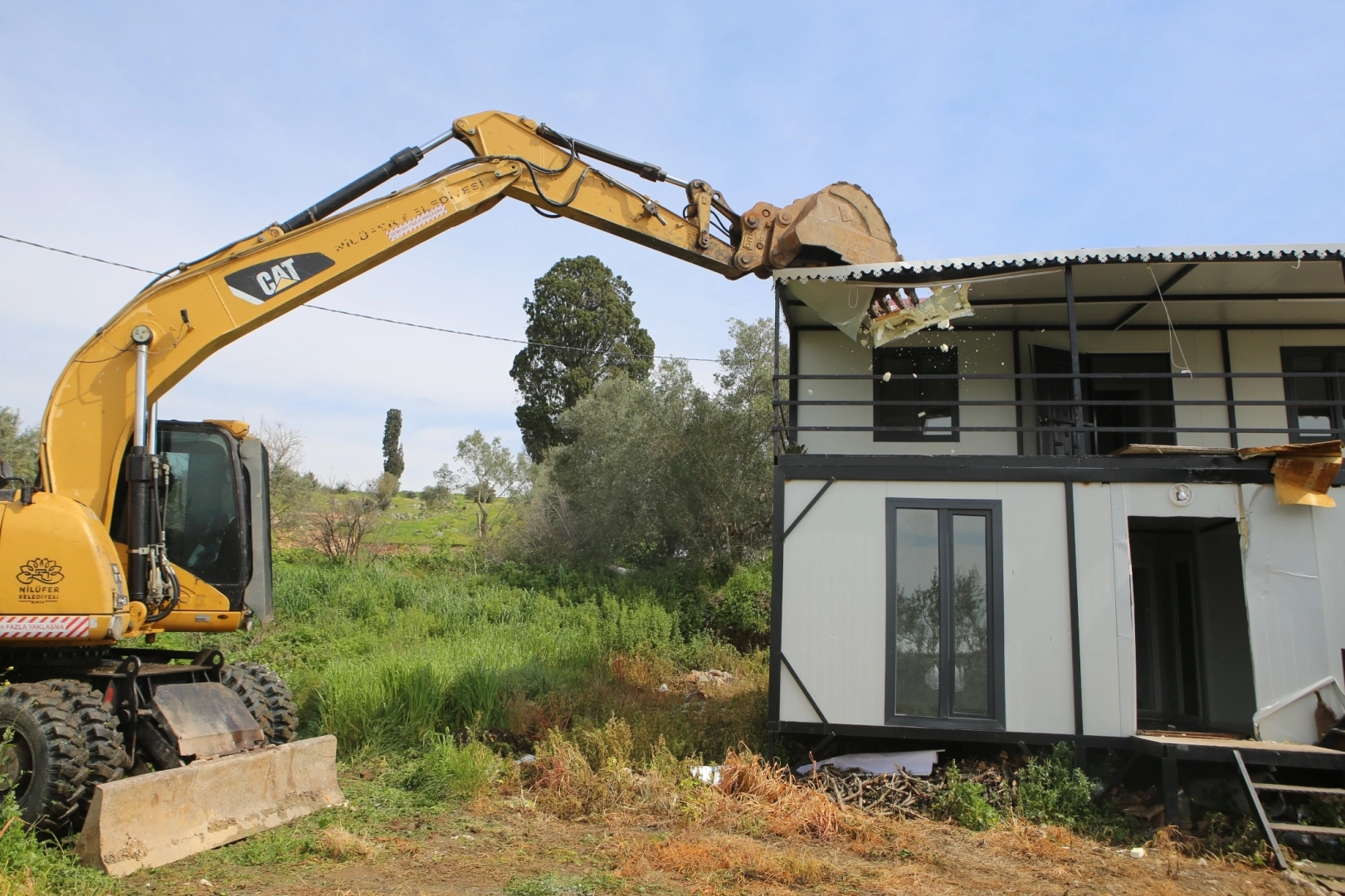 Nilüfer Belediyesi, kaçak yapılaşmayla mücadelesini kararlılıkla sürdürürken, tarihi ve doğal sit alanlarını korumaya yönelik çalışmalarına da aralıksız devam ediyor. Bu kapsamda, Bursa’nın önemli turizm destinasyonlarından biri olan ve tarihi dokusuyla öne çıkan Gölyazı’da gerçekleştirilen çalışmada, arkeolojik sit alanı içerisinde tespit edilen ruhsatsız yapılara yönelik yıkım işlemi gerçekleştirdi. İKİ KONTEYNIR YAPI YIKILDI Yapılan incelemelerde, sit alanı içerisinde izinsiz olarak konumlandırıldığı belirlenen toplam 240 metrekare büyüklüğündeki iki konteynır yapı için yasal süreçlerin tamamlanmasının ardından harekete geçildi. Söz konusu yapılar kontrollü şekilde yıkıldı. Yıkım öncesinde yapıların içerisinde bulunan eşyalar da zarar görmemesi için ekipler tarafından güvenli bir şekilde tahliye edildi. Ardından gerçekleştirilen yıkım işlemi, tüm güvenlik önlemleri alınarak sorunsuz şekilde tamamlandı.