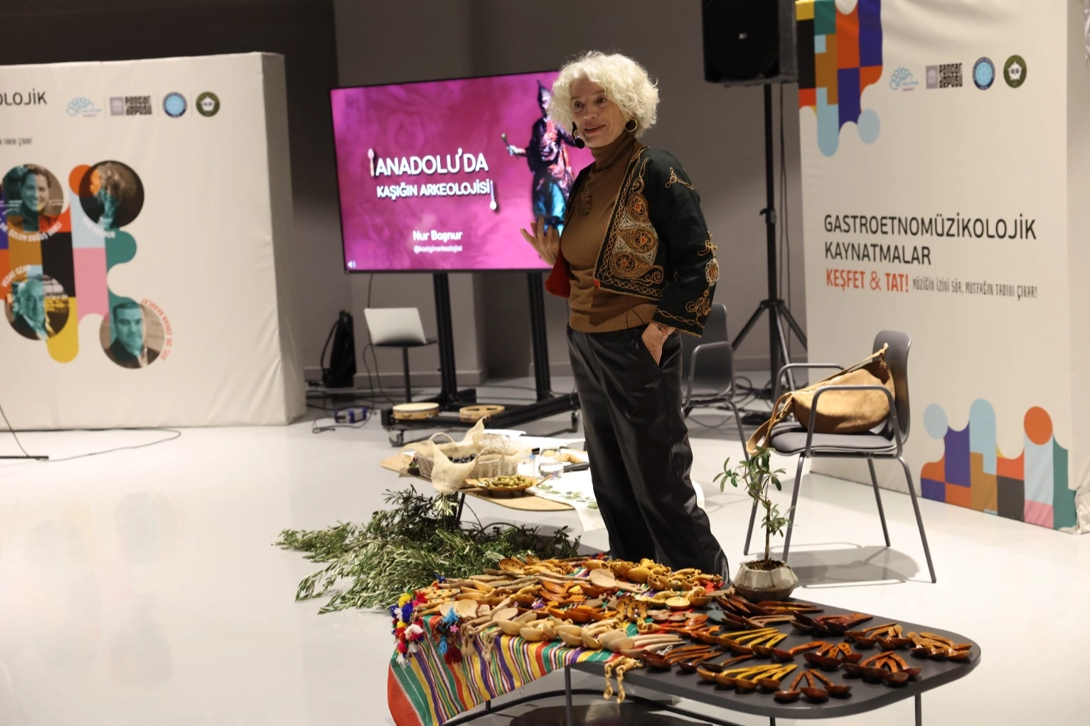 Programda “Anadolu’da Kaşığın Arkeolojisi” başlıklı bir sunum gerçekleştiren Nur Başnur, kaşığın sadece bir mutfak gereci olmadığını, aynı zamanda derin bir kültürel birikimi temsil ettiğini vurguladı. Başnur, kaşığın Türk ve dünya tarihindeki kullanım alanlarını, gelişim sürecini, dini ve kültürel sembollerini katılımcılarla paylaştı. Kaşığın sofradaki yerinden halk kültüründeki yansımalarına kadar pek çok detay, izleyiciler tarafından ilgiyle dinlendi.
