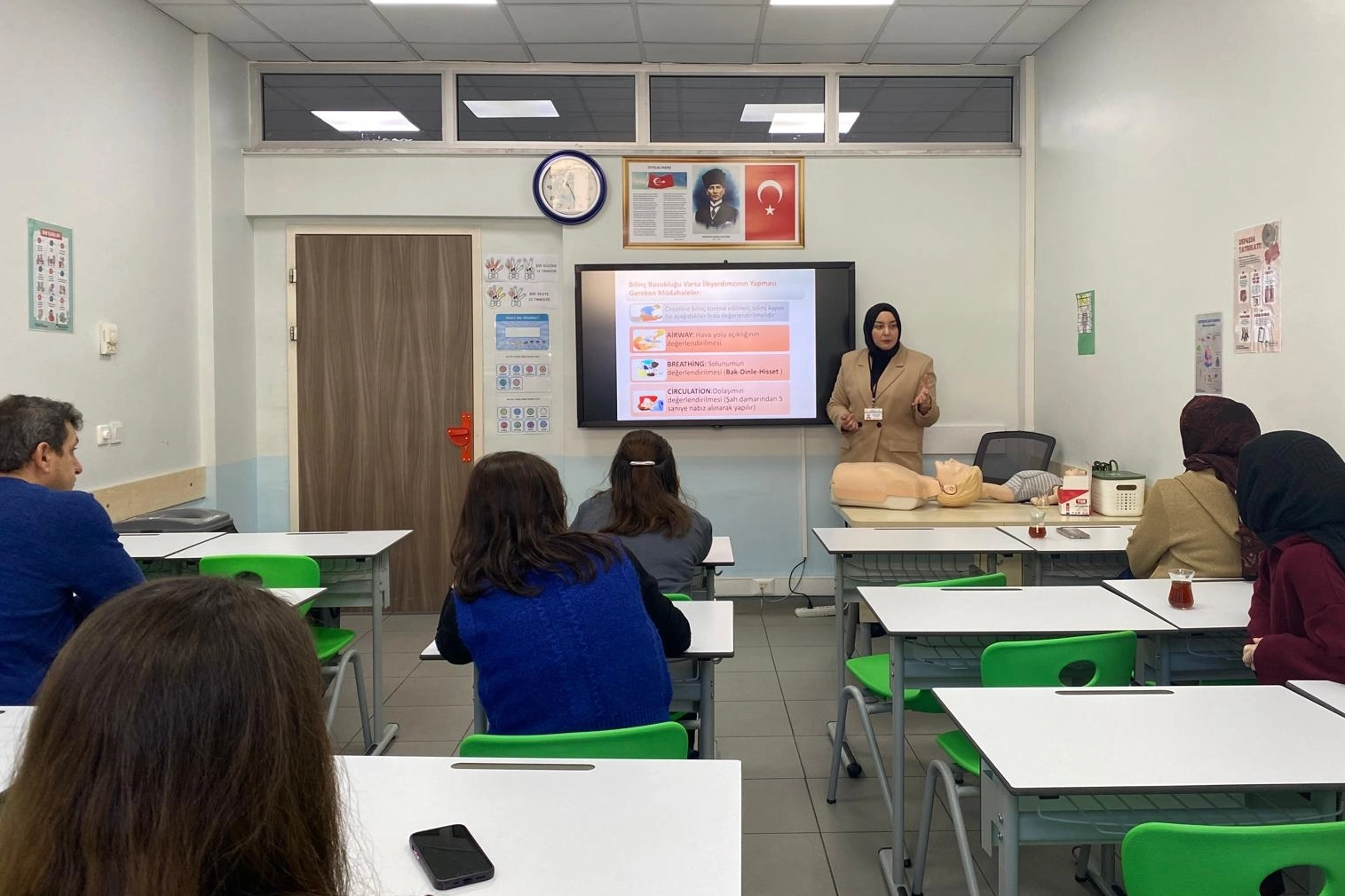 Sağlık ve Sosyal Hizmetler Dairesi Başkanlığı Sağlık İşleri Şube Müdürlüğü’ne bağlı hemşireler tarafından verilen sertifikalı eğitimlerde; “Temel Yaşam Desteği”, “Tam Tıkanmalar” (Solunumum tamamen durması-Heimlich manevrası), “Yaralanmalar”, “Hayvan Isırmaları”, “Kırık-Çıkık-Burkulma”, “Sıcak Çarpması”, “Kanamalar”, “İlk Yardım”, “Kalp Krizinde İlk Yardım”, “Zehirlenmeler ve “Taşıma Teknikleri” gibi konular uygulamalı olarak anlatıldı. Eğitimin sonunda İl Sağlık Müdürlüğü tarafından yapılan sınavda başarılı olan katılımcılara 3 yıl geçerliliği olan “İlk Yardımcı Sertifikası” ve “İlk Yardımcı Kimlik Kartı” verildi.