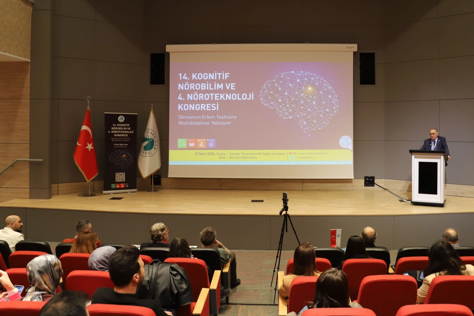 Üsküdar Üniversitesi’nce bu yıl ‘Demansın Erken Teşhisine Multidisipliner Yaklaşım’ ana temasıyla düzenlenen 14. Kognitif Nörobilim ve 4. Nöroteknoloji Kongresi, Üsküdar Üniversitesi NP Sağlık Yerleşkesi İbn-i Sina Oditoryumu'nda gerçekleştirildi. Demansın erken belirtilerini ele veren yeni keşifler ile erken tanıda rol alan son gelişmelerin ele alındığı kongre, alanında uzman isimleri bir araya getirdi.