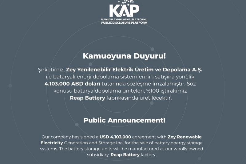 Sözleşme kapsamında, 1C şarj-deşarj oranına sahip batarya enerji depolama üniteleri üretilecek. Söz konusu ürünler, YEO Teknoloji’nin yüzde 100 bağlı ortaklığı olan Reap Batarya Teknolojileri A.Ş.’ye ait İstanbul Tuzla’daki fabrikada üretilecek. Projenin teslim süresinin 6 ay olarak planlandığı belirtilirken, anlaşmanın YEO’nun enerji depolama teknolojilerindeki üretim kapasitesini ve pazardaki konumunu güçlendirmesi bekleniyor.